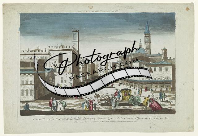 Vue de palais du ier magistrat, a Florence. Vue du Prieuré a Florence et du palais du premier magistrat, prise de la place de l'eglise des peres de l'oratoire