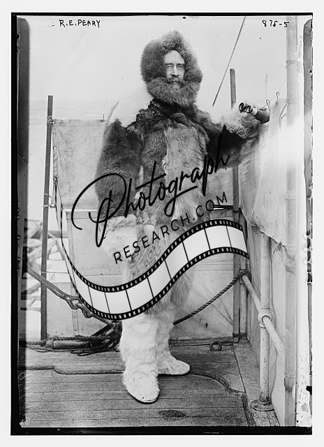 Robert Edwin Peary,1856-1920,on deck of 'Roosevelt' in fur parka,with binoculars