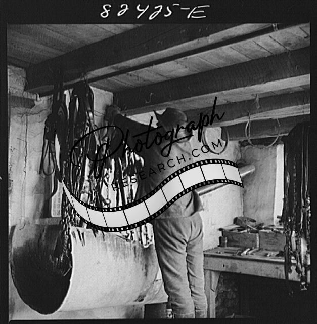 Title: Honey Brook, Pennsylvania (vicinity). Amish farmland dipping harness in oil on the Zook farm