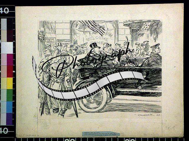 Why of course he's on board,Naval Parade,Ceremony,Cartoon,c1919,Cheering