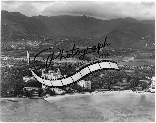 Waikiki Beach,Honolulu,Hawaii,HI,Royal Hawaiian Hotel,Mountains,1930-1940