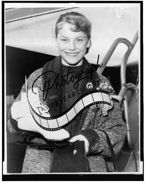 Carol Heiss,Skate,Disembarking from Airplane,La Guardia Airport,New York,1956