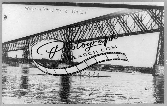 Rowing,Sports,Washington Varsity 8,WA,men in racing shell under bridge,1913