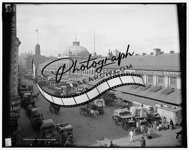 Quincy Market,streets,Agricultural Warehouse,carts,Boston,Massachusetts,MA,c1904