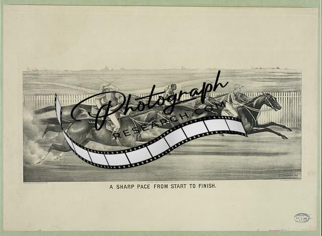 Sharp pace from start to finish,Horse Racing,Jockeys,c1884,Currier & Ives Photo