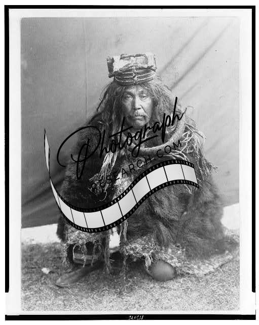 Hamatsa Costume,Nakoaktok,Kwakiutl Indian,dressed in skins,c1910,Edward S Curtis
