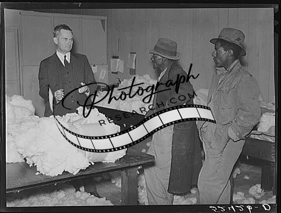 Title: Negro farmer who has brought his cotton samples to town discusses price with cotton buyer. Clarksdale, Mississippi Delta, Mississippi