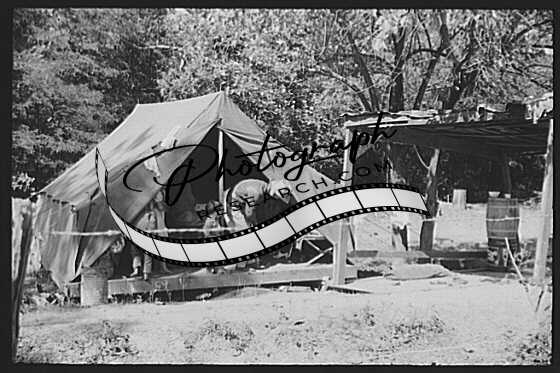 Title: Tents of Mexican labor brought from Texas by contractor for the duration of cotton picking season. Hopson Plantation, near Clarksdale, Mississippi Delta, Mississippi