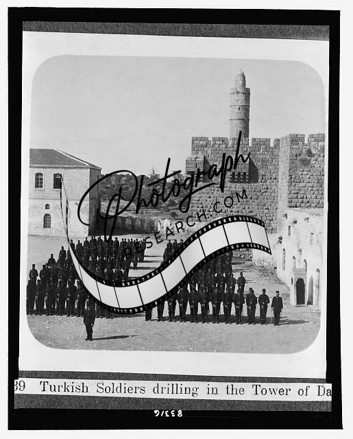 Turkish soldiers drilling in the Tower of David,1900-34,Turkish troops,Jerusalem