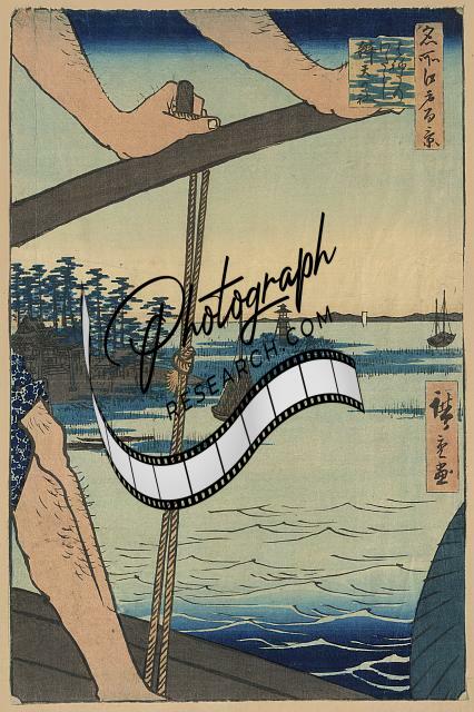 Shibaura no fukei,Hiroshige Ando,Photo of Ukiyo-e,Japan,Birds Flying,Boats,1856