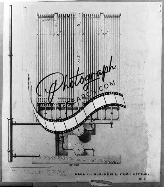 United States General Post Office,sliding window,Engine Room,c1855,drawing