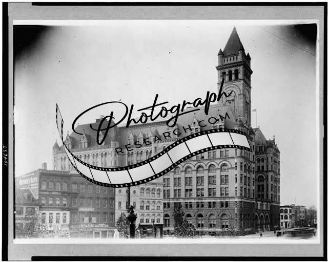 Exterior,Old Post Office,surrounding buildings,government,Washington DC,c1910