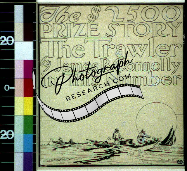 Men at sea in trawler,1914?,Edward Penfield,Boat,Seas,Sunrise,Prize Story,2