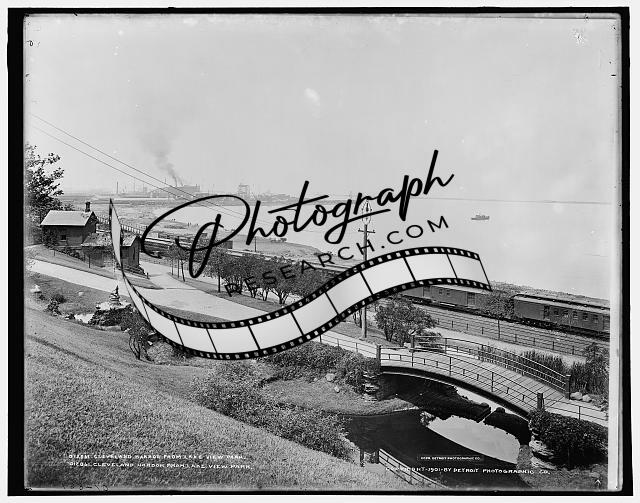 Cleveland harbor,railroads,bridges,boats,trains,Lake View Park,Ohio,OH,c1901