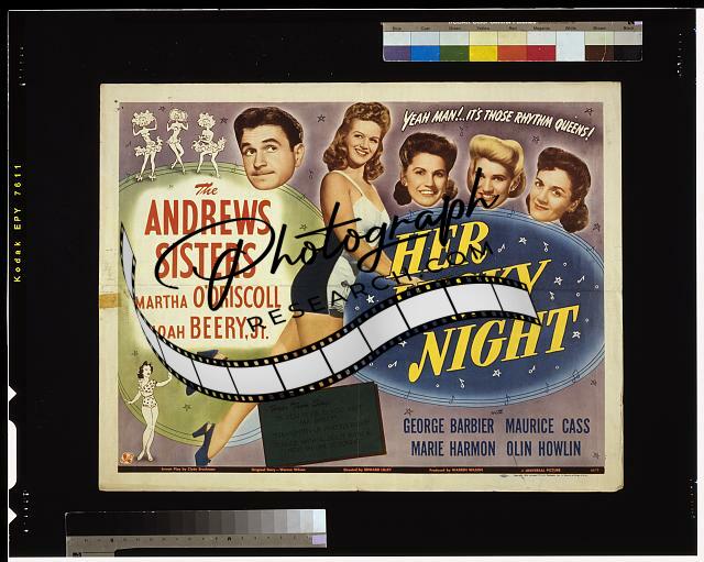 Motion picture poster for "Her Lucky Night" showing stars the Andrews Sisters.