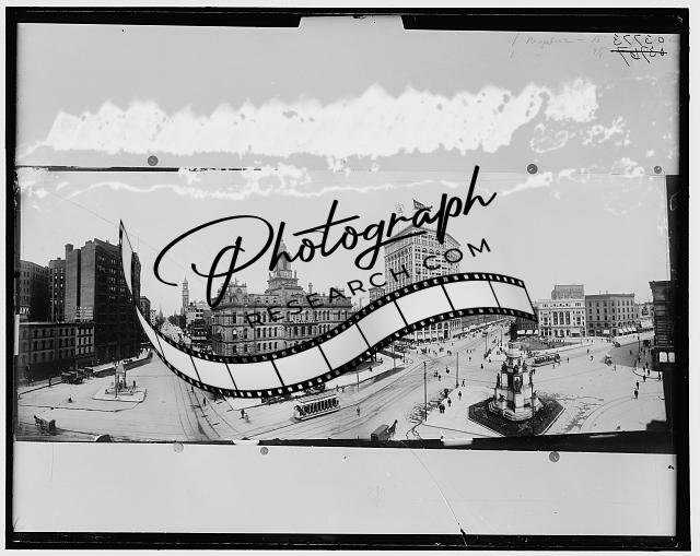 Detroit,buildings,cities,fountains,statues,street cars,tracks,Michigan,MI,1880