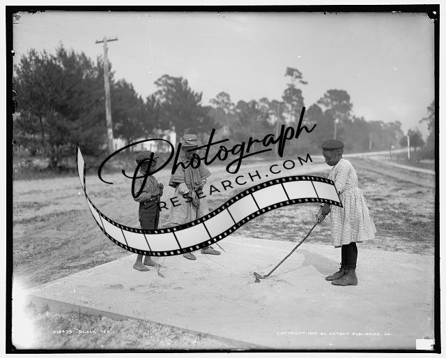 Black tee,African American,children,golf,playing outdoor,Detroit Publishing,1905