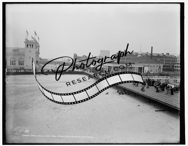 Board walk west,beach,piers,wharves,Steel Pier,Atlantic City,New Jersey,NJ,1880