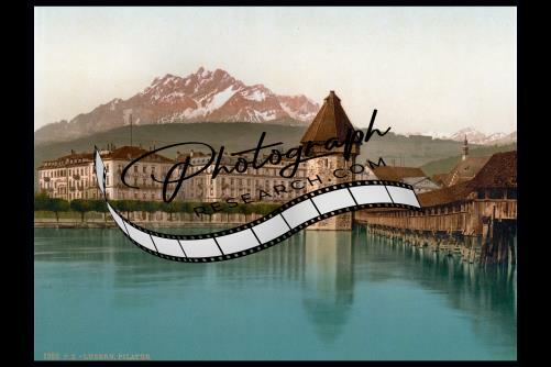 Title: [The quay, Hotels Schweizerhof and National and Cathedral from the Swan Hotel, Lucerne, Switzerland]