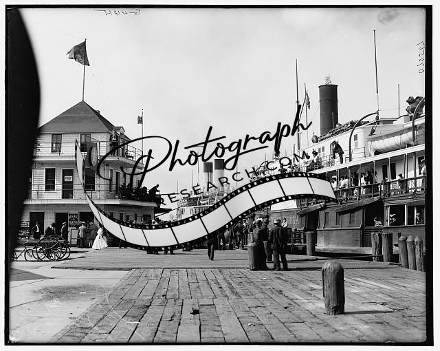 Steamers,pier,City of Alpena,side wheeler,docks,Port Huron,Michigan,MI,c1908