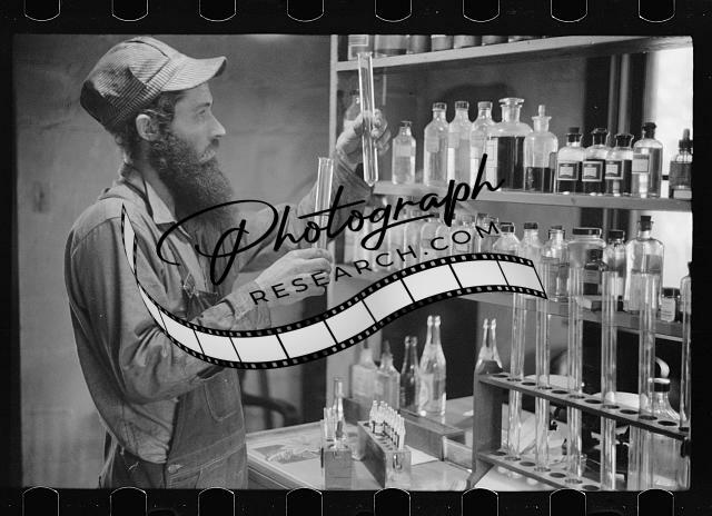 Chemical laboratory at House of David,Benton Harbor,Michigan,MI,Vachon,1940,1
