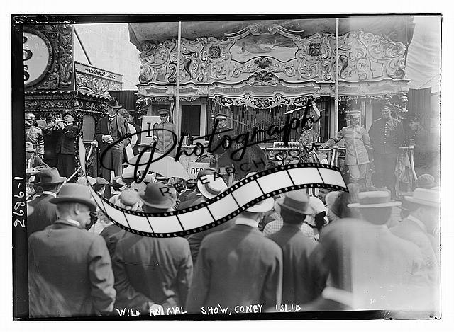 Wild Animal Show - Coney Island,New York,1910-1915,bear,people,umbrella