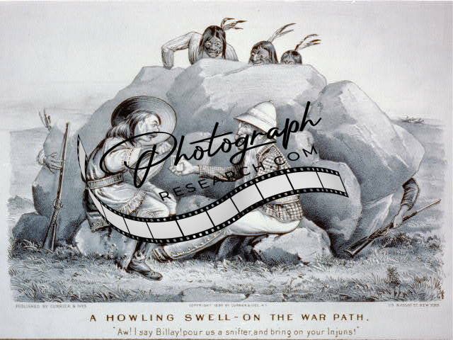 A Howling Swell,War Path,Indians hide behind rock,Cowboy,Snifter,c1890