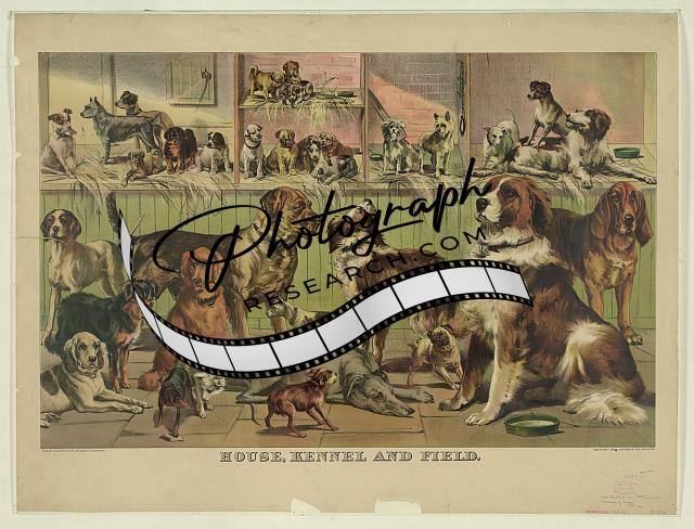 House,kennel,field,Currier & Ives Photo,c1893,Dogs,Puppies,Saint Bernard