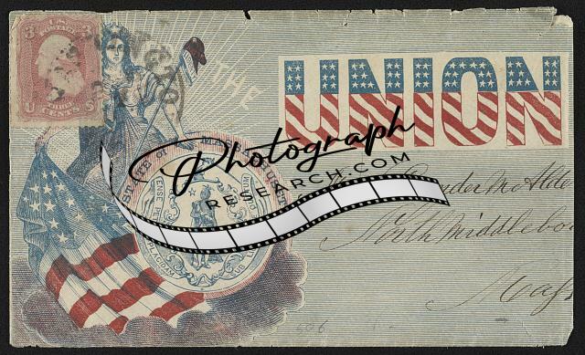 Photo of Civil War envelope,Columbia with flag,Massachusetts,Phrygian cap,1861
