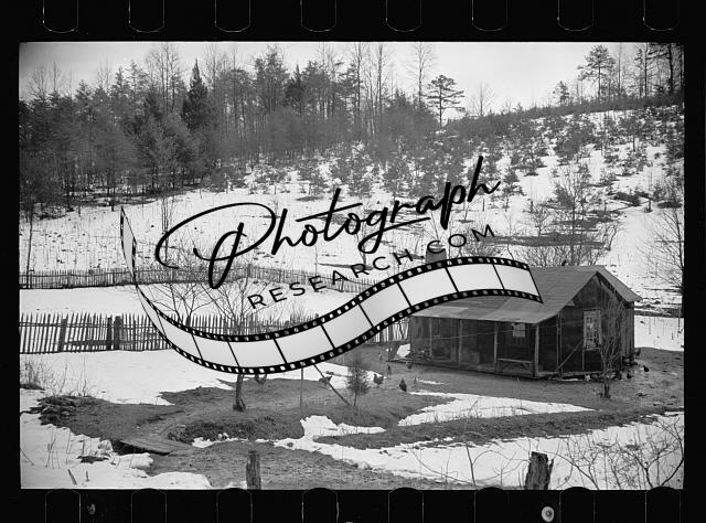 Mountain farmhouse,snow,winter,rural areas,fences,Appalachian Mountains,1936