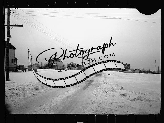 Houses,homes,electric poles,tracks,roads,doors,winter,snow,1935 1