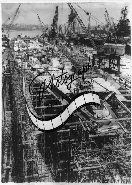 Carrier Saratoga under construction,naval yards,stations,ship industry,NY,c1955