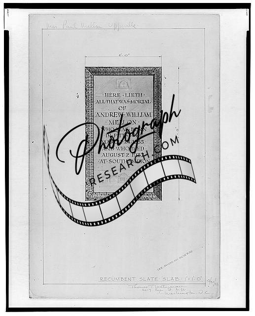 Sepulchral monument ("Andrew W. Mellon marker") for Mrs. Paul Mellon, Pittsburgh, Pennsylvania. Recumbent slate slab