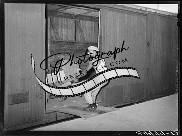 Title: Unloading freight car load of cotton. Compress, Houston, Texas