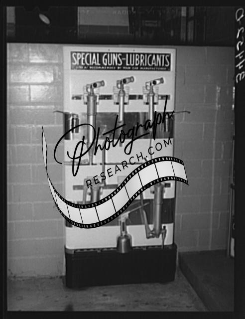 Lubrication equipment in gasoline service station. Victoria,Texas,TX,FSA,1
