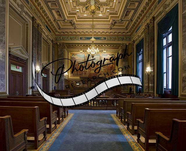 Title: West courtroom, chandelier, Howard M. Metzenbaum U.S. Courthouse, Cleveland, Ohio