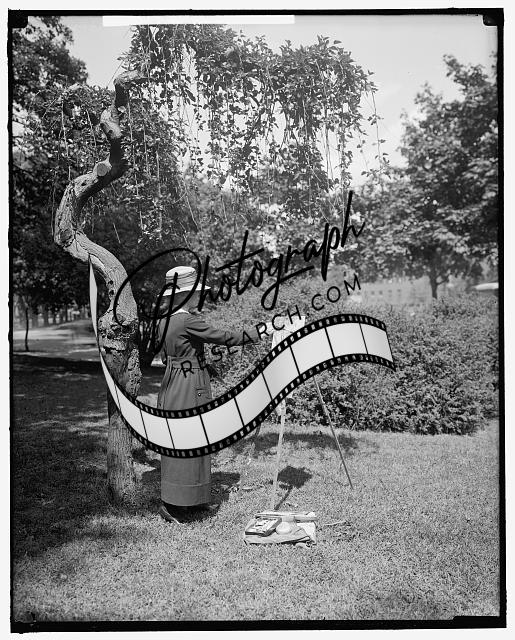 Miss Lesley Jackson painting outside,Harris & Ewing