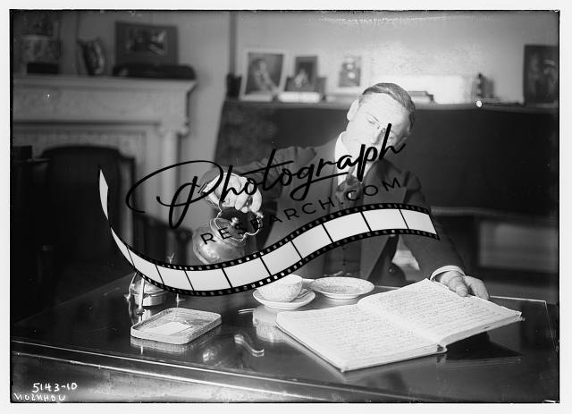 Johnson,paperwork,tea,drinking,kettles,cups,fireplaces,men,Bain News Service