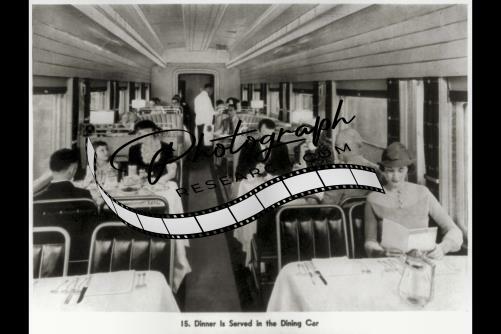 Views inside railroad cars,dinner is served!,dining car,people eating,1935-40