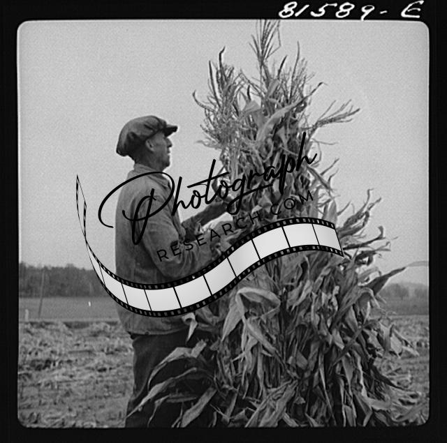 Title: Putting up a shuck of corn on Mambert farm, near Coxsackie, New York