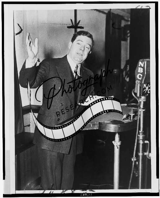Summary: Huey P. Long, half-length portrait, facing front, kneeling on one knee next to a large mound of mail.