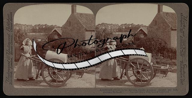 A milkmaid of Goes on her morning rounds--a typical costume and tank, Zeeland, H