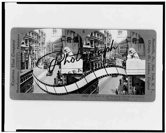 Photo of Stereograph,Street,Shopping District,Victoria,Hong Kong,China,c1931