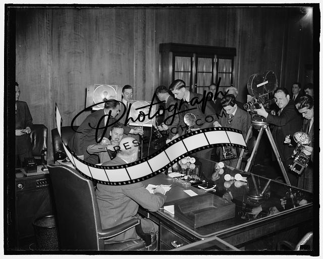 Title: New Ambassador to Germany. Washington, D.C., Jan. 14. Hugh Wilson, former asst. sec. of State, and newly appoint ambassador to Germany replacing William E. Dodd, photographed at his desk at the State Department, 1/14/38