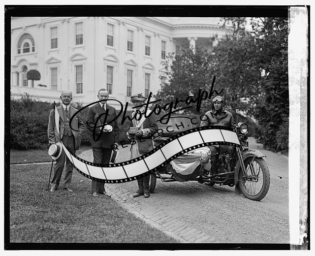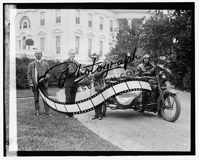 President Coolidge,sidecar motorcycle,in front of White House,6/6/24,June 1924
