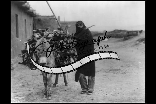 A load of fuel--Zuni man,Indian,burro laden w/ firewood,Edward S Curtis,c1903