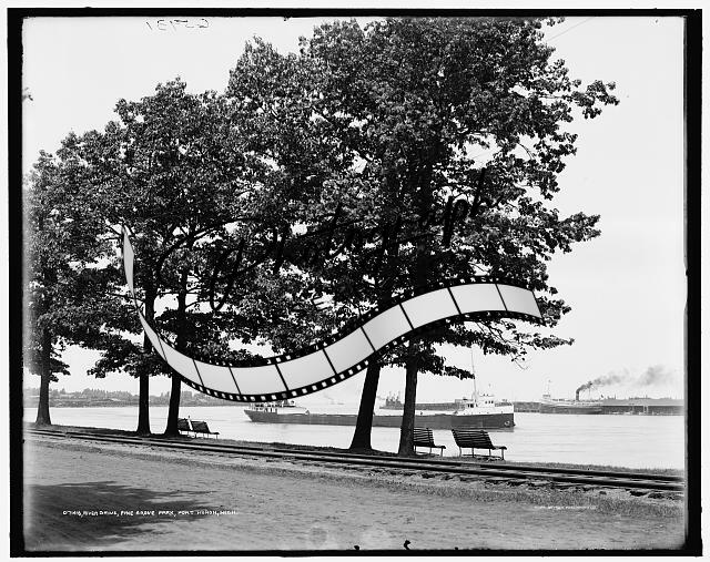 River drive,Pine Grove Park,Umbria,freighter,cargo ships,Port Huron,MI,c1900