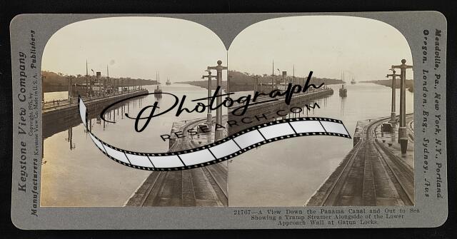 Site of the Gatun Lock, looking south from the lowest lock towards Lake Gatun--P