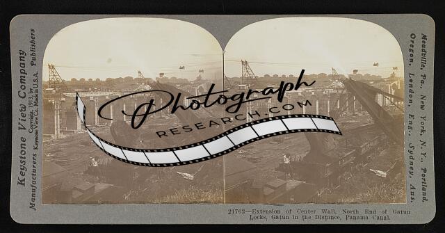 Extension of center wall, north end of Gatun Locks, Gatun in the distance, Panam
