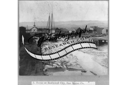 Scene at Redwood City,San Mateo County,California,CA,1866,boat,docks